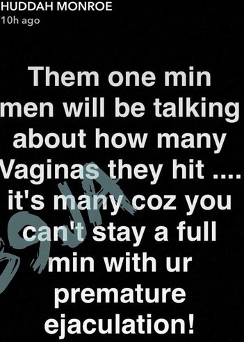 Huddah Monroe took to snapchat to blast all proud one minute men who