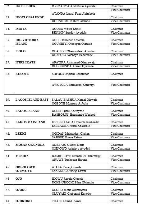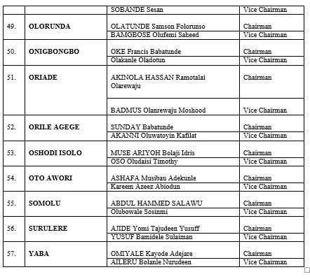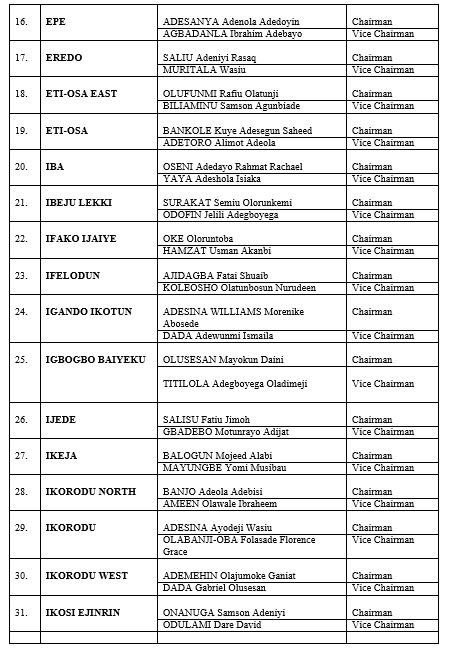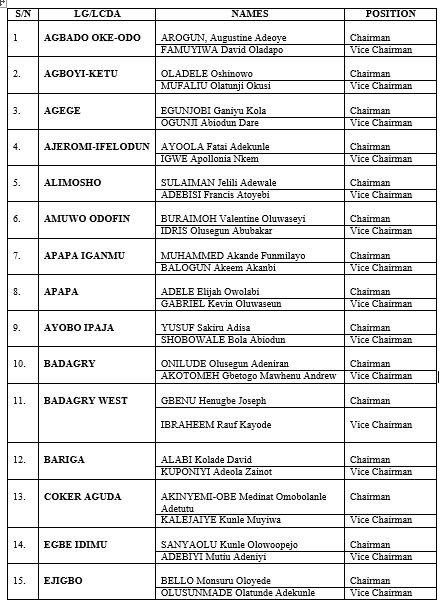 The new Local Government & Local Council Development Area Chairmen & Vice Chairmen in Lagos State . See photos below